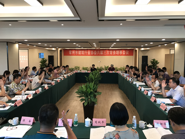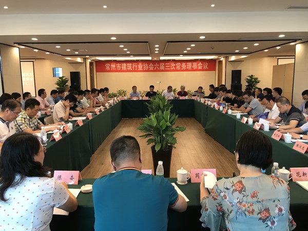 8月24日下午,常州建筑行业协会六届三次常务理事会议在球速(体育中国)官方网站召开,会议由秘书长朱俊毅主持,51位常务理事和监事参加了会议。市城乡建设局副局长贡浩平、市建管中心主任干孟泽及局属相关部门领导受邀参加了会议。