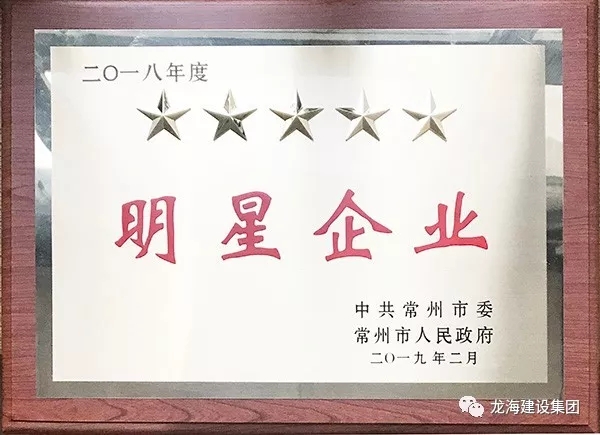 2、2月13日,在溧阳市委市政府召开的“重大项目攻坚年”“全域环境攻坚年”动员大会上,集团公司因创成常州市首家特级建筑企业被授予2018年度特别贡献奖。董事长张龙海荣获“溧阳市杰出企业家”荣誉称号。