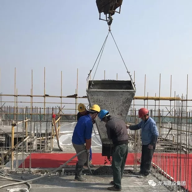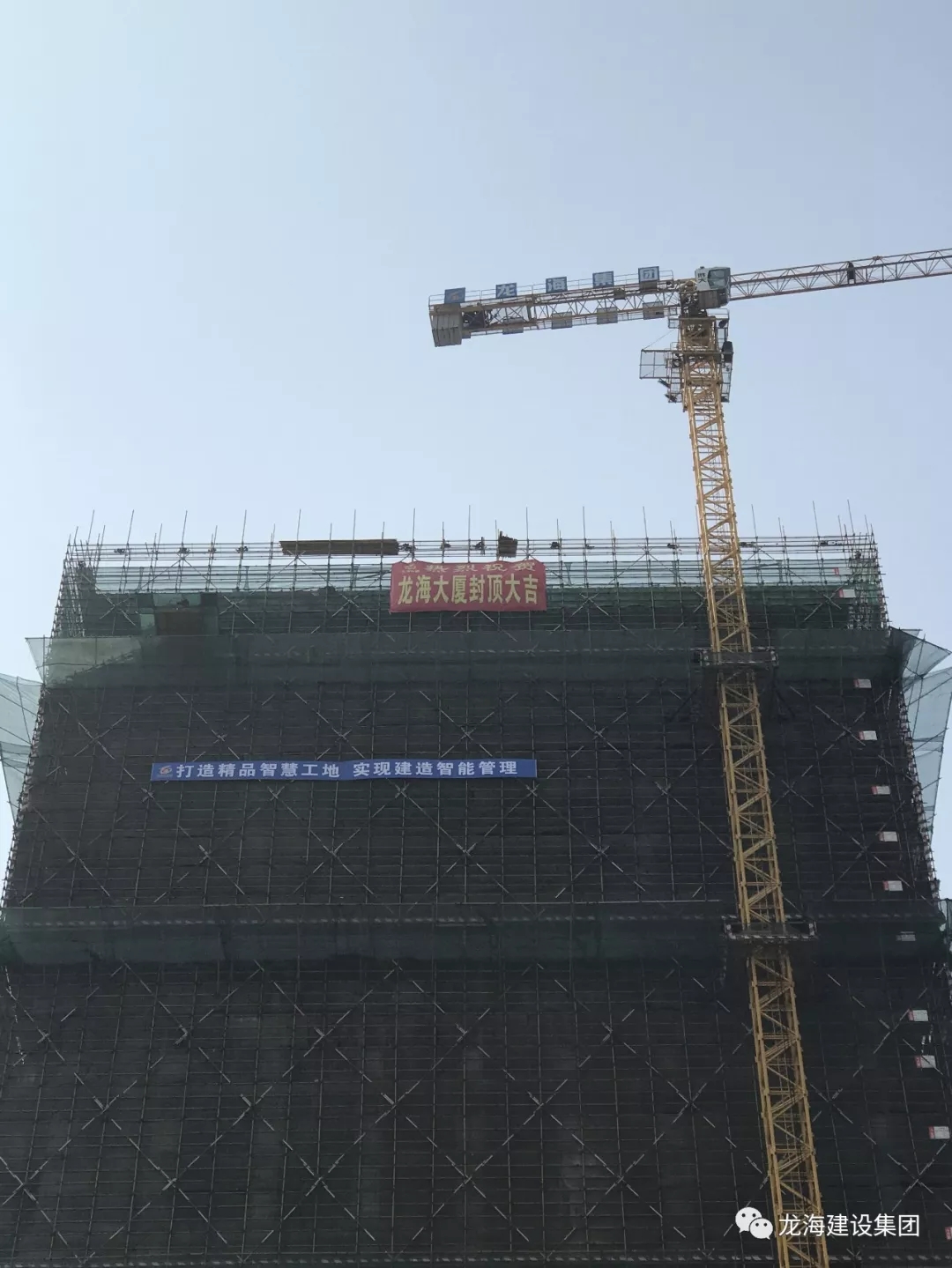 4月5日上午, 天空澄碧,万里无云,龙海集团新办公大楼—龙海大厦施工现场人头攒动。经过一年多紧张施工,由龙海集团承建的新办公楼主体框架高效完成并顺利封顶。