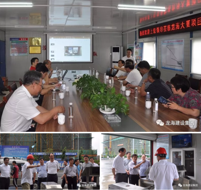 7月19日下午,市政协主席狄立新、住建局副局长黄翔勇、人社局局长陆卫林等一行多人来到集团公司龙海大厦项目部,对智慧工地在农民工工资支付中的应用进行实地考察。集团董事长张龙海进行了陪同接待。