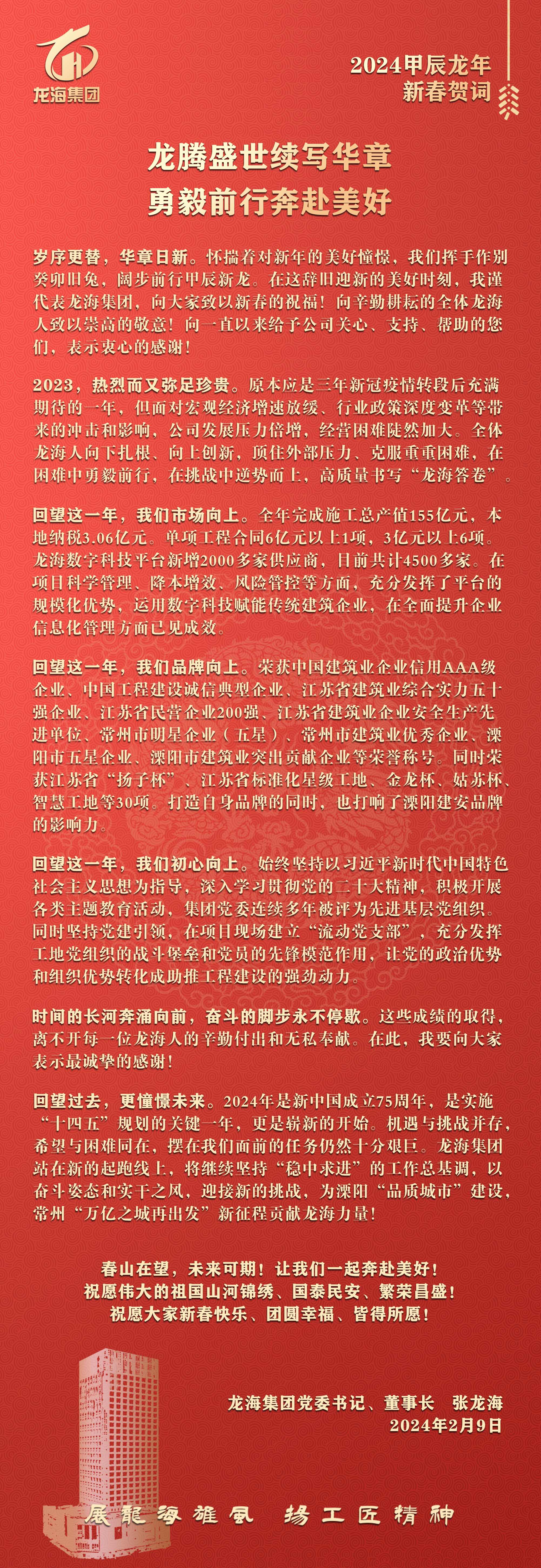 张龙海董事长2024新春贺词 | 龙腾盛世续写华章 勇毅前行奔赴美好