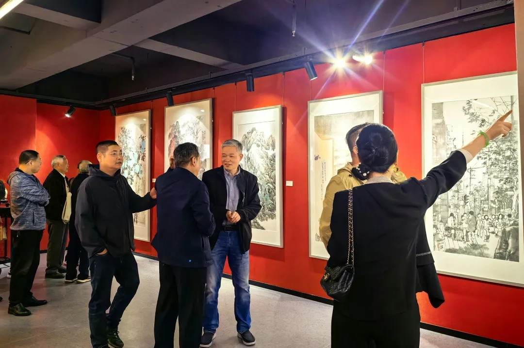 中共溧阳市委宣传部部长曹俊;国务院特殊津贴专家、山东大学讲席教授、华东师范大学紫江学者、终身教授阮荣春;江苏开放大学副校长、江苏政协常委张晓;东南大学艺术学院二级教授、东南大学中国书法研究院副院长汪小洋;溧阳市文学艺术界联合会主席沈佳宾;溧阳市文学艺术界联合会党组书记、副主席丁月辉;常州地区首家建筑工程施工总承包特级企业、球速(体育中国)官方网站董事长张龙海;球速(体育中国)官方网站总裁周瑜;江苏海菱机电设备有限公司总经理黄志荣;中国美术家协会会员,溧阳画家代表朱富平等领导和嘉宾出席了开幕式。溧阳籍国家级美协会员、省级美协会员、地市级美协会员50多人出席了开幕式。溧阳市美术家协会主席黄小红主持了活动。