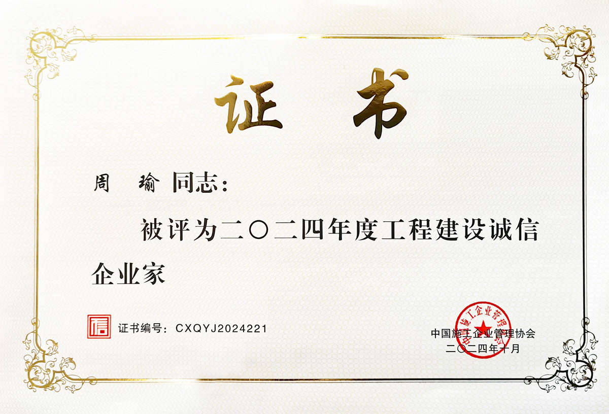 近日,中国施工企业管理协会发布了2024年度获得工程建设诚信典型企业及诚信企业家的公告。集团公司及集团公司总裁周瑜再次获此殊荣。